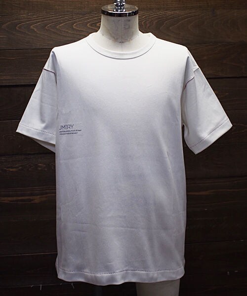 生地は厚地のCotton100%の生地を使用し、少し肩の落ちる位のsize感で、リラックスして着れるsize感です。 アームホール・両脇部分・袖口・裾部分は、糸調子を変化させて『縫い目の糸の色を見せる』事で単調になりがちなTシャツにアクセントを付けています。 Simpleな形ですがしっかりデザインされたTシャツです。 右胸にJMBRYの歴史をリフレクタープリントで表現しています。(反射シートをレーザーカットして圧着プリントで貼り付け加工しています。)