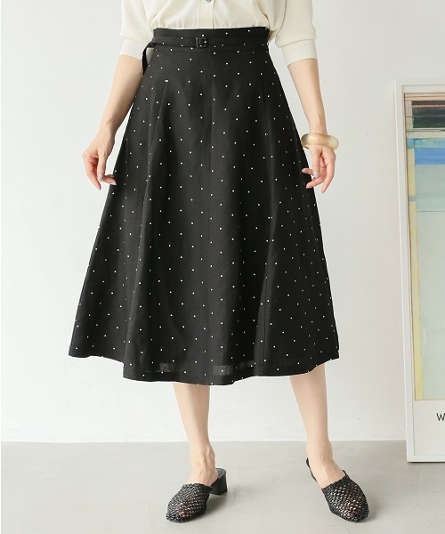 春夏定番のリネン素材フレアスカート。広がりすぎないフレアシルエットは、腰回りをスッキリ、ひざ下を華奢に見せてくれるようこだわりの仕立てに。共生地でベルトを付属しているので、Tシャツやブラウスをインしてもウエスト回りをキレイに見せてくれます。ブラウスやハイゲージニットで合わせてお仕事スタイルに、Tシャツやカジュアルトップスと合わせて普段使いにと、着回し力のある1着です。《インフォメーション》◆商品のお気に入り登録完売していても再入荷時に再入荷通知を受け取ることができますので、是非ご登録ください♪◆ブランドのお気に入り登録新商品や再入荷などの情報を受け取ることができますので、是非ご登録ください♪公式Instagram >>> 【@apartbylowrys 】おすすめアイテムや新作情報、" ショップニュース "を更新中! ぜひフォローしてみてくださいね^^・ファスナー有り。・裏地有り。