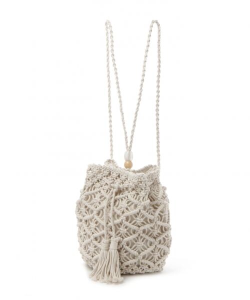 マクラメ編みの立体的で表情のあるナップサックです。ショルダー・リュックの2WAYでお使いいただけます。涼し気な印象とともに個性的な編み柄は、コーディネートのアクセントとしても◎。