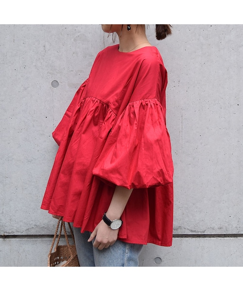 ホワイト/Mサイズ→3/29 生産再開しました ブラック/Mサイズ→3/28 新色登場 ーーーーーーーーーーーーーーーーーーーーーーー ふんわり膨らんだ袖と胸切替のギャザーが大人のフェミニンさを演出!! たっぷりと膨らんだ袖から見える手首はスッキリと! これからのシーズン一着持っていると重宝します。 ーーーーーーーーーーーーーーーーーーーーーーー 【セレクト】quatre chaton 【COLOR】ホワイト/ブルー/レッド/ブラック 【SIZE】Mサイズ 平置き(㎝) 着丈65 身幅53 裄丈57 裾幅130 【素材】本体 綿100%