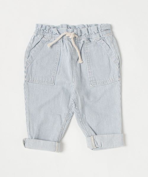 着脱が簡単なプルオンウエスト 股下: 33cm 寸法は2Tのサイズに基づいており、その他のサイズでは異なります。 滑らかな織り地 ゴム仕様のウエスト フロントにユーティリティポケット、バックにパッチポケット ロールダウンできる裾 レイルロードストライプの総柄 *商品タグに記載の価格とサイト上の販売価格が異なる事があります。