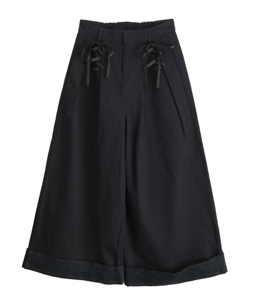 トレンドのチノ素材を使用したワイドパンツです。ゆったりとした履き心地ですが、前開きファスナーになっているためウエストはすっきりと見えます。長めの丈で大人っぽい印象に。・ジップフライ。