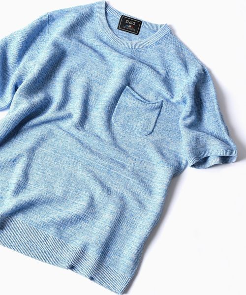 "SAFILIN" (サフィラン)社のフレンチリネンを使用したニットTシャツ 上品な光沢感が特徴のサフィラン社のフレンチリネンを使用し、リラックス感溢れるデザインに仕上げた半袖タイプのニットTシャツです。 リネン特有の高い通気性と清涼感に溢れながら、表面はリネン、裏面にはコットン糸を使用したダブルフェイス編みにすることで肌触りの良い着心地を実現。吸水性、速乾性にも優れたこだわりの仕上がりが特徴です。 また、リネンとコットンがダブルフェイスで混ざり合う事で生まれる独特のミックス感もポイント。他にはないSHIPS独自のデザインとなっております。 Tシャツよりも上品に、品よく決まるニットTシャツは今季注目のアイテム。新しい感覚で合わせられる、コーディネートの強い味方になること間違いなしの逸品です。 SAFILIN社のフレンチリネンの特徴 ・フランスの本社がフランス北部ノルマンディ地方で栽培されたフラックスだけを厳選して調達。吟味を重ねた原料で紡績されたリネン糸は、レベルが高く良質で安定性があります。また、原草までのフルトレーサビリティを行っております。 ※トレーサビリティ:物品の流通経路を生産段階から最終消費段階あるいは廃棄段階まで追跡が可能な状態 ・原料が良質で均質なため、番手のムラやネップが少ないのが特徴です。そのため、やわらかく肌触りの良いきれいな生地を作ることができます。 ※画像の商品はサンプルです。 実際の商品と仕様、加工、サイズが若干異なる場合がございます。