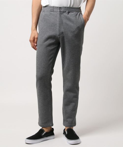 程よく肉感のあるポンチスウェット地で仕立てたパンツです。トラウザーを彷彿させるシルエットですっきりめにまとめ、カジュアルさを程よく抑えているのがポイント。ウエストは全周ゴム入りに加え、フロントボタンとジップをプラスしました。トップス合わせに困らず楽しめる定番入りなアイテムです。