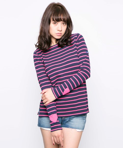 袖口のハート型パッチがポイントのトップスは、バスクシャツ風にもカーディガンとしてもOKな前後着用可能デザイン。甘く編まれたオリジナルの天竺により、着心地も柔らかく◎! ※画像の商品はサンプルです。 実際の商品と、仕様・加工・サイズなどが若干異なる場合がございます。 モデル身長:168cm 着用サイズ:S