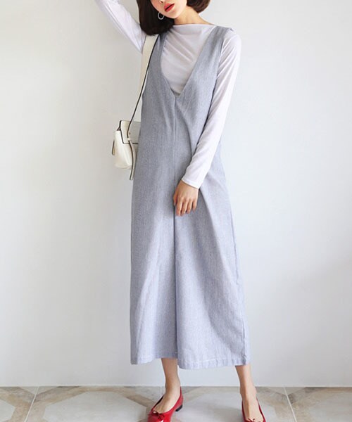ワイドなパンツがお洒落なオールインワン。ストライプ柄がさわやかな雰囲気です。 体型を完全にカバーできて前後Vネックで品まで+。バックファスナーで開閉◎ ※WEARに記載してある金額と、DHOLIC通販サイトに記載してある金額にシステム都合上、稀に誤差が生じます。正しい金額はDHOLIC通販サイトに記載された金額です。