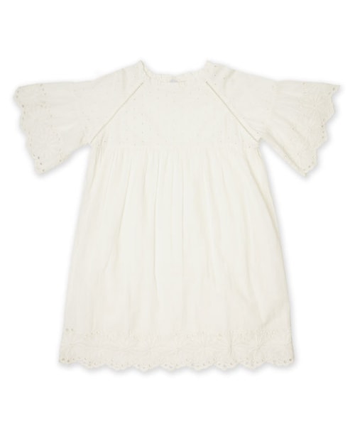 今季のテーマであるromanticな雰囲気漂うflowerにしかない特別なレースがcuteなとっておきのワンピースです。 袖口と袖にはお花が連なった刺繍とさりげない星の刺繍をミックスしたflowerらしい遊び心あるレースをあしらいました。 上身頃と裾のカットワーク刺繍が軽やかさと透明感を演出してくれます。 袖と裾はAラインのシルエットで、空気を含んでふんわりとしたシルエットに。 甘すぎないふわふわのコットン地でさらりと心地良くきて頂けます。 刺繍を同色にすることで柔らかい印象になり、取り入れやすく幅広く愛される雰囲気に仕上げました。 1枚で軽やかに着るのは勿論、ボトムスと合わせたカジュアルミックスなスタイリングも◎ デニムやミリタリーパンツは特に好相性でおすすめです。