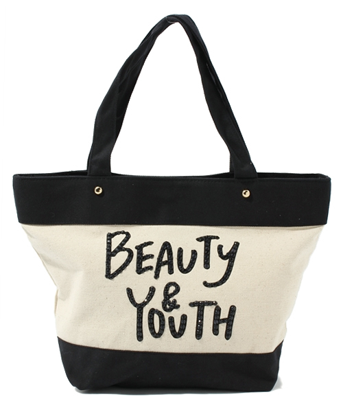 BEAUTY&YOUTH各店で大変ご好評を頂いている、キラキラロゴのトートバッグが入荷しました! モノトーンで仕上げたシックなボディに、内袋はキュートなピンク色♪ バッジやバンダナなどでカスタマイズ頂くのもオススメです! 気兼ねなくデイリーに活躍頂けるデザインと程よいサイズ感は、ギフトにも是非★ 店舗にてお問い合わせの際は、全国のBEAUTY&YOUTH各店舗まで下記の品番をお申し付け下さい。 品名:BC BY CVS B&Y LOGO TT 2 品番:1832-699-3936