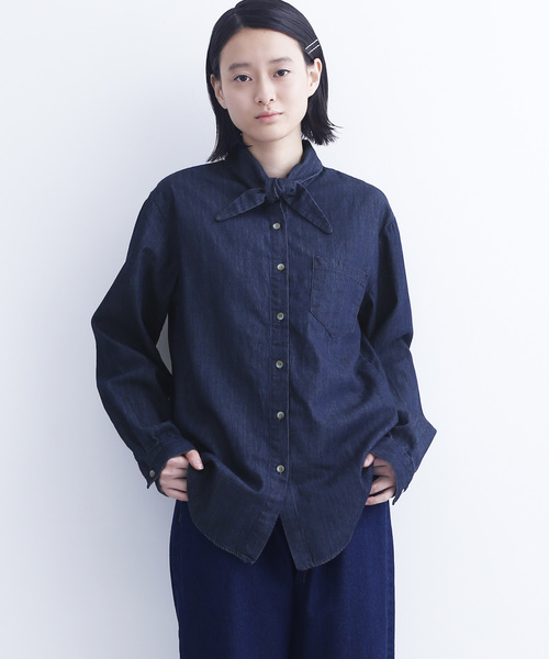 【MERLOT IKYU(メルローイキュウ)】 merlotのトラッドライン。 日々の喧騒から離れて一休みできるユーモア&ハッピーな「のんびり着」を提案。 シンプルでどことなく遊びごころ溢れるシルエット、贅沢な生地使いでゆったりとした着ごこちにこだわった、ナチュラルにもモードにも着こなせる大人の「のんびり着」。 どなたにでもちょっぴり個性的で高品質な商品をお楽しみ頂けるmerlotが発信しているトラッドラインです。 ■スカーフを首に巻いたような襟デザインのブラウス。 レトロな雰囲気が、こなれ感を取り入れてくれます。 ワイドなボトムスやフレアスカートと合わせてふんわりとしたコーデはもちろん、タイトなボトムスと合わせたメリハリコーデもおすすめです。