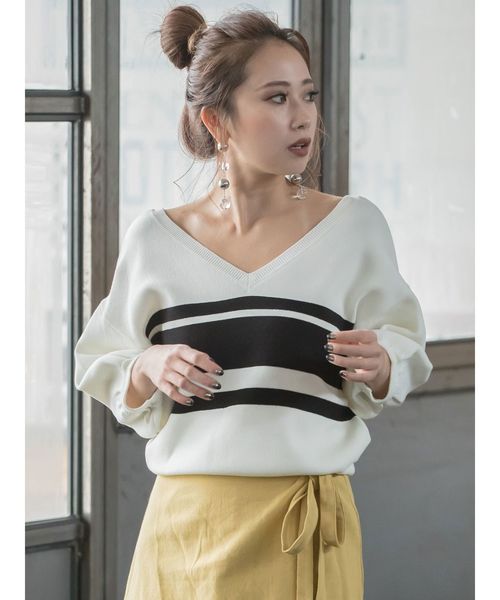 前年までのトレンドから定番化してきているラインデザインのニット! 肌さわりの良いニットを仕様しております。 子供っぽくならない様にネック周りを広くすることできれいめな印象に。 フレアスカートやアイラインスカート合わせがオススメ!