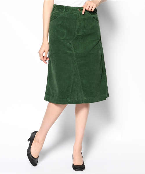 コーデュロイ素材のロングスカート。程よくタイトなシルエット。ニットとの相性も抜群です。秋冬のワードローブにプラスしたいアイテムです。 model:H170 B77 W66 H88 着用サイズ:MEDIUM