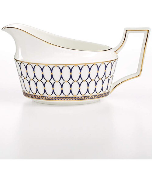 Embellished with intricate garlands, oval links and a fanciful dragon motif, this Wedgwood dinnerware evokes Europe's glorious Renaissance period. Rendered in deep blue and gold to transform any formal meal into a spectacular royal gala.