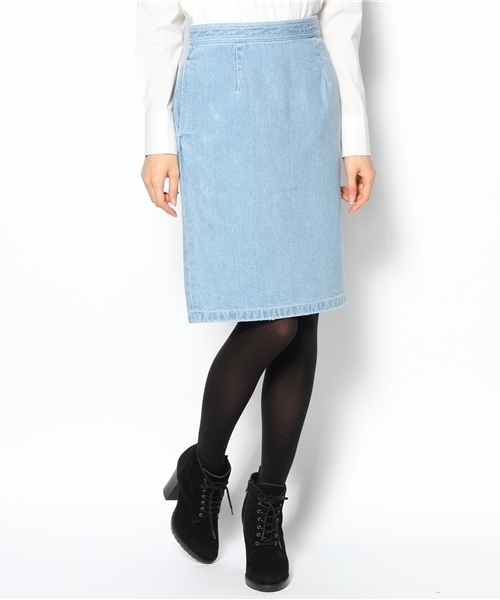 ワンウォッシュデニムにカラーステッチをきかせたインディゴとダメージ加工をいれてハードめに仕上げたサックスの2色展開。 色によって印象の違うタイトスカートです。 今年らしいスタイリングに仕上がる一着です!