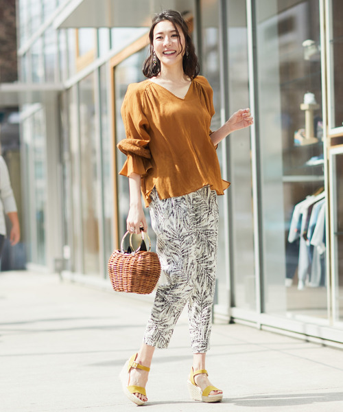 今季のサブテーマ”CASABLANCA”を表現したパームツリー柄のタックパンツ。 大胆な柄ですが、素材感と配色がモードな雰囲気を演出します。 着丈はくるぶし丈で軽さがあり、リゾート感漂う1枚です。 こちらは同素材で「パームリーフビスチェ(RDZ1081402A0004)」もお作りしており、セットアップでの着こなしもおすすめです! 柄のボトムは体のラインをうまくカバーしてくれるので、スタイルアップも狙えるアイテム♪