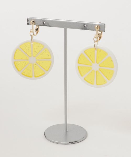 フルーツモチーフで仕上げたイヤリング。 遊び心あるデザインが、手軽に普段の着こなしのアクセントになるひと品。 お値段も手頃ですので、ご自身用は勿論、プレゼントにもオススメです。