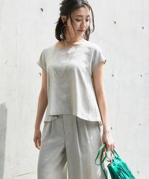 リネンのような清涼感のある風合いですが、合成繊維を使用したブラウス。 トリアセテートは、光沢があり発色の良さと吸湿性、きれいな落ち感が特徴の素材です。 ご自宅でお手入れ可能な素材は春夏に嬉しいポイント♪ こちらは同素材で「リネンライクワイドパンツ(RDZ1081402A0001)」もお作りしており、セットアップでもお召しいただけます。 きちんと感もありつつ、Tシャツ感覚で気軽に着られるアイテムです。