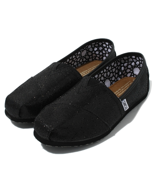 トムスのウィメンズクラシックの2013年新作。流行のグリッター(ラメ)はコーディネートのアクセントとして取り入れやすい。シンプルな春夏にピリッとスパイスを。履き心地の優しさを体感してください。 TOMS(トムス)は、2006年にブレーク・マイコスキーによってアメリカで誕生しました。始まりは、ブレークがアルゼンチンへ行った際、現地の子供の小さな足を守るべき靴がない事実を受け、何かできることはないだろうかと思い立ったのがきっかけです。 【One for One.】TOMSが設立当初から行っている活動です。商品を一足購入ごとに、靴を必要としている子供に一足寄付されるチャリティーは、現在までに1,000,000足以上を世界中の子供たちへ届けています。どこか懐かしいデザインと軽くて履きやすい靴は、日本も含め世界で人気があります。