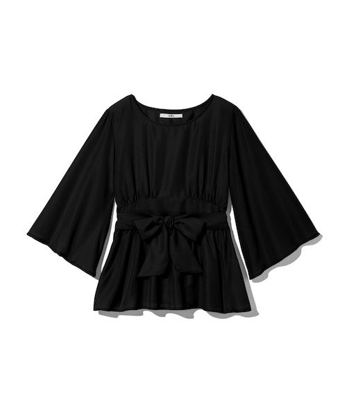 ウエストに飾ったリボンが乙女心をくすぐるトップス♪ ぺプラム部分がひらりとなびいてフェミニンさを演出♂ ふんわり広がるフレアスリーブもトレンドライクなアイテム◎