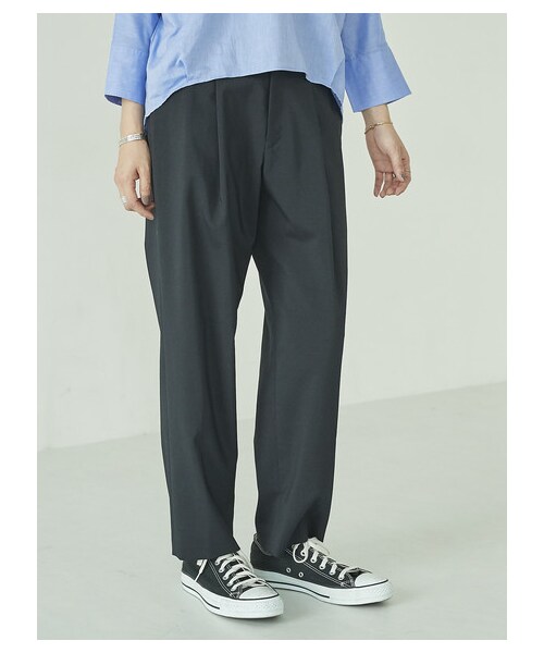 フロントにタックをあしらい、立体的な表情をメイクするテーパードパンツ。 腰回りと太もも部分は程よいゆとりで穿き心地も良く、裾に向けてスッキリと細めに仕上げたフォルムは女性らしいスタイルを叶えます。 フラットシューズからヒールパンプスまで足元のアレンジがたくさん楽しめるのも嬉しいポイントです。