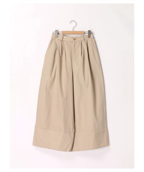 巧みなタックワーク使いでボリュームを加えた、一見パンツには見えないデザインがポイント! ウエストラインの切り替えが腰まわりをスッキリと見せて、メリハリの効いた美スタイルを後押ししてくれる1本◎後ろのみゴム仕様になっており、リラックスして着こなせるのも魅力です。