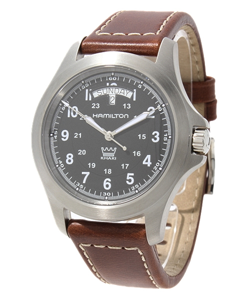 ◆HAMILTON◆(ハミルトン) 『アクティブシーンからビジネスシーンまでフィット』 冒険」と同義の名を冠した“カーキ”。ミリタリーウォッチとして誕生したこのモデルは時を経て、今やフィールド・ウォッチの代名詞となり蘇った。ハミルトンが求める機能は簡潔である。しかし、その要求基準は高い。精度は言うに及ばず、高い視認性と対振、対衝撃、対磁などどんな環境にも耐えうる強靱さ、そして活動を妨げることのない装着感。過酷なミリタリーユースで培ったスピリッツとノウハウがそこに凝縮されています。 ●クオーツムーブメント 955.132 ●ステンレススティールケース ●レザーストラップ ●サファイアクリスタルガラス ●5気圧防水 ●ケース径 40mm