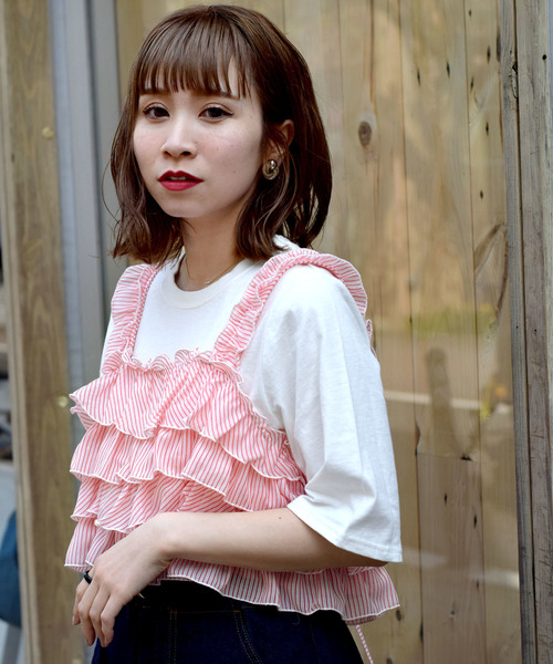 使いやすさ抜群のドッキングビスチェが新登場。Tシャツがドッキングされているので1枚でコーディネートが出来上がります。ビスチェ部分はサラッとしたシフォン素材なので程よいボリューム感で着ていただけます。ハイウエストのボトムと合わせて足長効果も◎。後ろのリボンでバックスタイルも可愛い。春アウターやカーディガンとの相性も良く、使いまわしNO.1。【お買いものにおすすめの便利機能!】★商品のお気に入り登録完売カラーの再入荷の時や、ラスト1点の時、セールになった時にお知らせします。★ブランドのお気に入り登録新商品や再入荷、セール情報など、いち早くブランドのお得な情報を受け取ることができます。ぜひご活用ください!