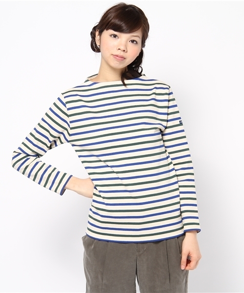 フランス北部ノルマンディー地方にあるSAINTJAMES市に1889年に創設された“SAINTJAMES”。 定番人気のボートネックカットソーをご紹介します★ 優しいハリ、耐久性、着心地と優れた機能を持つ一枚。可愛らしいボーダーがコーディネートのアクセントに◎カジュアル好きの方に大変おススメです! model:H168 B79 W59 H86 着用サイズ:MEDIUM フランス製 店舗にお問合わせの際は下記の品番をお申し付け下さい。 品番:3612-343-0350