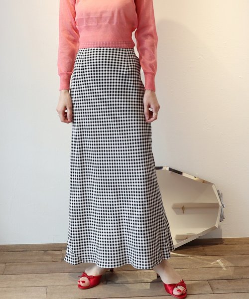 【2018SS COLLECTION】 EDIT.FOR LULU ◆大好評につき追加決定! ロングセラーのマキシスカートに、春夏にぴったりのさわやかなギンガムチェックが加わりました。 カラーアイテムを合わせたり、大ぶりアクセサリーや、夏素材のバッグなどこれからの季節にぴったりなアイテムです。 女性らしい落ち感にこだわったレーヨンのクレープ素材を使用。 自然に伸縮するバイアスカットを施した素材を使用し、どんな体型の方にも綺麗に馴染みやすい作りとなっております。 生地の表面にシボを強めに残すことで、ヴィンテージライクな雰囲気に仕上げました。 ※取り扱いについては、商品についている品質表示でご確認ください。 ※店頭・外での撮影画像は、光の当たり具合で色味が違って見える場合があります。 商品の色味は、スタジオ撮影の画像をご参照ください。 洗濯:ドライクリーニング ・ファスナー有り。 ・裏地有り。