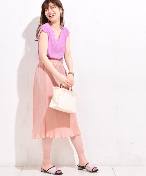 【2018SS natural couture】皆んな大好き!愛され度の高いスカラッププルオーバー 毎回大好評を頂戴しているスカラップTシャツに新作が登場!首回りと袖部分にスカラップディティールを施した愛らしいトップス。前後でVネックとUネックの2通りが楽しめる2wayデザイン。広めに開いたネック部分は、女性らしくこなれた印象をプラス。伸縮性のあるテレコ素材を使用しており、少しゆったりとした身幅でストレス無くお召し頂けます。また、キュッとしまった裾のシャーリングが程よく体にフィットし、メリハリのあるシルエットを実現。このまま1枚で着ても、サロペットやワンピースのインナーとしても合わせて頂ける優秀アイテム。ナチュラルで可愛らしいアイテムを是非GETして下さいね!