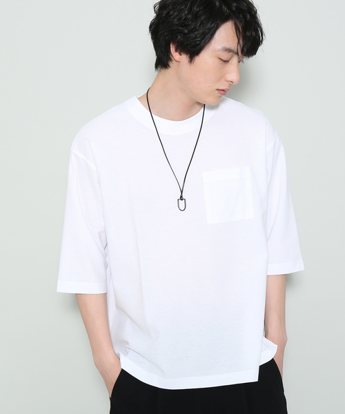 布帛見えする上品ツイル素材は、さらりとした肌触りがこれからの季節にぴったり清涼感のある生地感と風が通り抜けやすいボリューミーシルエットが魅力のプルオーバーです。伸縮性のあるカットソー生地ですが、ハリ感があって布帛見えするので綺麗めな印象。シンプルデザインでボトムを選ばず合わせられて、ロング丈のサーマルやタンクトップとも好相性です。