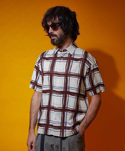 手書き風の大柄チェックを使用した半袖シャツ。柄はUNITED TOKYOオリジナルで作成したチェックです。スタンダードな細さのシルエット。レギュラーサイズの衿。羽織としても使えるインパクトアイテム。
