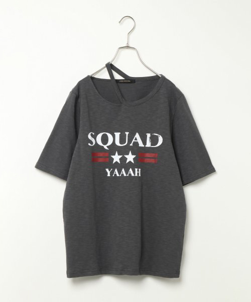 デコルテのチラ見せが可愛いスラッシュネックのロゴTシャツ!夏の定番でもあるロゴTですが、これなら他と違ってちょっぴりセクシー!ショーパンやスキニーに合わせるだけでもおしゃれです。[クリーニング]洗濯機洗い可(弱く) 洗濯の際はネットを使用してください