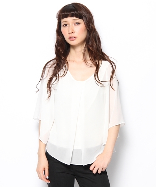 袖のドレープがエアリーに流れフェミニンムードを一層引き立てるブラウス。素材にはシフォンを使用し、シンプルなデザインが落ち着き感のある一品です。カット素材のインナーがセットになった嬉しいアイテムは重宝すること間違いなし! ボトムには柄物や細身のパンツを合わせて、エレガントなデイリースタイルをお楽しみ下さい。 Model : H166 B80 W58 H85 (cm) Size : ONE SIZE 店舗へお問い合わせの際は下記品番をお伝えください。 品番:63-11-0056-639