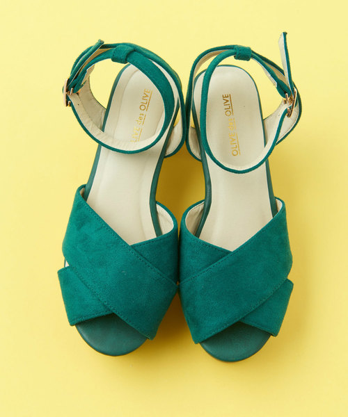 OLIVE des OLIVE 2018SS クロスのデザインと厚底のヒールがかわいいサンダル。 プラットフォームのあるウエッジソールは、安定感があり歩きやすい一足です。 アッパーの太めのクロスデザインとかかとのストラップでホールド感も◎。 スタイリングに合わせやすい落ち着いたカラーも嬉しいポイントです! Model着用:Lサイズ