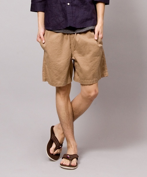 ウエストをドローコードで快適に仕上げたクライミングショーツ。リラックスして楽に着用頂けるのは勿論、膝上の丈で通気性が良く、動きやすいのも特徴。単色仕様に加えて、ドット柄やフラッグチェック柄などのパターンもご用意しました。穿きやすいシンプルなパンツにデザインをプラスした遊び心のあるひと品です。 ※)この商品は、独特な風合いを出す為の加工を施しております。一点一点異なる色の表情をお楽しみ下さい。 店舗にてお問い合わせの際は、下記の品名・品番をお申し付け下さい。品名:クライミングショーツ 品番:B13SM-1505-004 その他1model:H173 着用サイズ:MEDIUM model:H174 着用サイズ:MEDIUM グリーンmodel:H180 B94 W72 H92 着用サイズ:MEDIUM レディースmodel:H156 着用サイズ:MEDIUM
