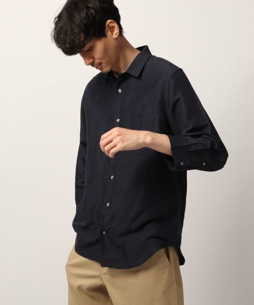 フレンチリネンブレンドリネンとレーヨンの生地を採用し程よい落ち感と、光沢感のあるアイテムにしました。少し大きめのサイズで、シャツ羽織りとして着用していただくと今年らしいスタイルになります♪※独特な生地表面感を出す為に経糸にレーヨン、緯糸に麻を使用して織りたてています。その為洗い後に、縦方向の縮みが生じます。縮んだ際は、伸ばしながらアイロンを掛けて頂くと回復します。他にはない雰囲気をお楽しみ下さい。