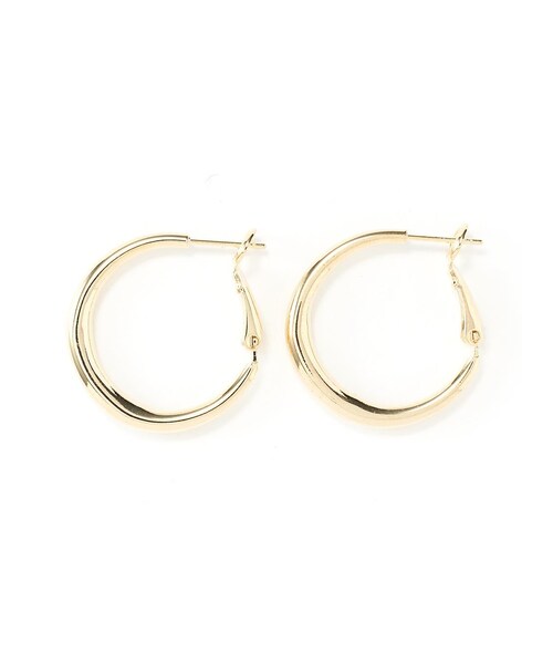 艶めくゴールドカラーにラグジュアリームード漂うフープピアス♪ リラックスコーデのアクセントとしてや、ONシーンにも活躍してくれます♂ 大人なスタイリングにもなじむ、すっきりとしたフープデザインのアイテム☆ ★素材の特性上、カラーが、写真と多少異なる場合があります。 ★真鍮なので錆びにくい素材です。