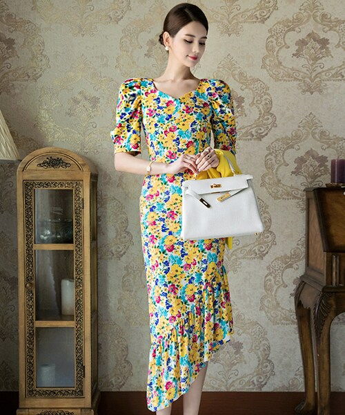 D3532 スプリングメロディフラワーワンピース