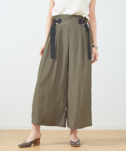 ◇上品なリラックス感が漂う 光沢のある素材を使用しているワイドパンツは、大人の装いに取り入れたい一着。薄手で軽やかなボトムは夏のリラックススタイルにぴったりです。 ◇スタイルアップ効果抜群! 上品なDカンベルト付きでウエストまわりをすっきりと見せてくれます。キュッとウエストマークすればスタイルアップ効果も狙えるトレンドデザインです。 ◇快適な履き心地 サラリとした快適な履き心地は汗をかくこれからの季節に大活躍!たくさんお出かけする旅行シーズンにおすすめのアイテムです。