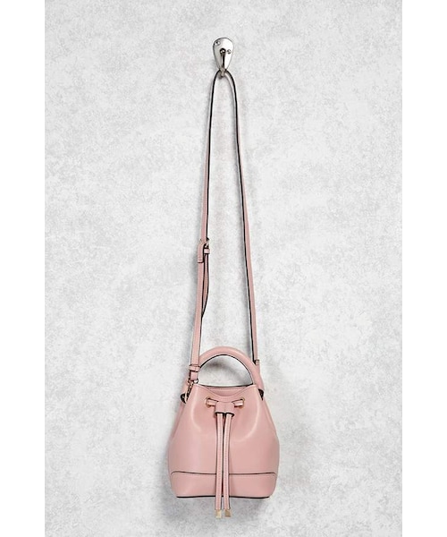 details A structured mini faux leather bucket bag with a drawstring closure, detachable crossbody strap, top handle, an interior patch pocket, and high-polish accents. Content + Care - 100% polyurethane - Made in China Size + Fit - Height: 6.75" - Width: 7" - Depth: 3.25"