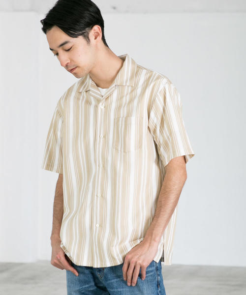 今シーズンも注目したいオープンカラーを取り入れた半袖シャツ登場。開襟デザインと上品な雰囲気のストライプ柄の組み合わせがいい感じです。1枚着として着用するのはもちろん、フロントボタンを開けた羽織りスタイルもおすすめ。落ち着いた色使いで大人ごなしなカジュアルスタイルに活躍します。ベージュのメイン画像のモデル:身長185 B83 W72 H93 着用サイズ:Lネイビーのメイン画像のモデル:身長179 B82 W72 H91 着用サイズ:L商品の詳細ディテール紹介画像のモデル:身長179 B87 W69 H90 着用サイズ:L※画像の商品はサンプルの為、実際の商品と仕様・加工が若干異なる場合がございます。また、記載のサイズ・素材が若干変更となる事がございます。※照明の関係により、実際よりもやや明るく見える場合がございます。またパソコンなどの環境により、若干製品と画像のカラーが異なる場合もございます。予めご了承ください。店舗へお問い合わせの際は、全国のgreen label relaxing 各店舗まで下記の品名/品番をお申し付け下さい。品名:CM トリコットストライプ オープンカラー 品番:3216-225-1305