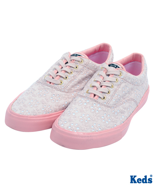『Keds』コラボレーションアイテム! 『Keds』とは... 「よりシンプルに」「よりクラシックに」「より大人に」をアプローチするシューズブランド。 そんな『Keds』とのコラボレーションは、春にふさわしい総レースデザインのローテクスニーカー。インソールの蛍光ピンクもMILKFED.とのコラボレーションならでは! ※画像の商品はサンプルです。 実際の商品と、仕様・加工・サイズなどが若干異なる場合がございます。