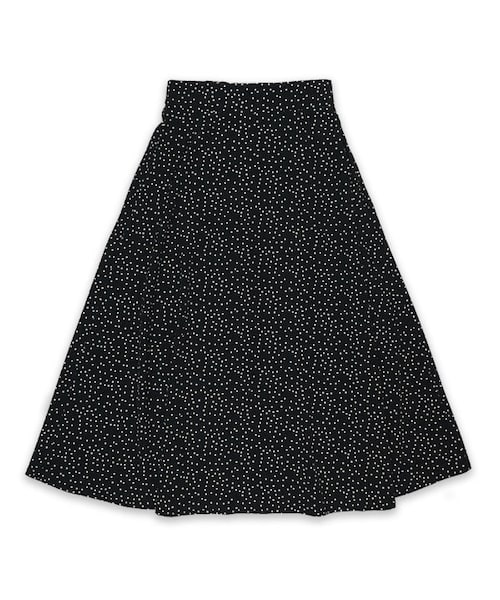 たっぷり使用した生地がゆったりとした柔らかい動きを演出し、大人な雰囲気に。 ウエスト周りにはギャザーやタックが入っていないのでウエスト周りのボリューム感がなく、裾に向かって大きく広がるシルエットがスタイルアップ効果抜群です◎ クラシカルな印象になり過ぎないよう、ランダムに散りばめられたドット柄で遊び心もプラスしました! カットソーやTシャツ、スニーカーなどカジュアルなアイテムと合わせても女性らしく仕上げてくれる1着です。 ※ホワイトのみ裏地付きです。