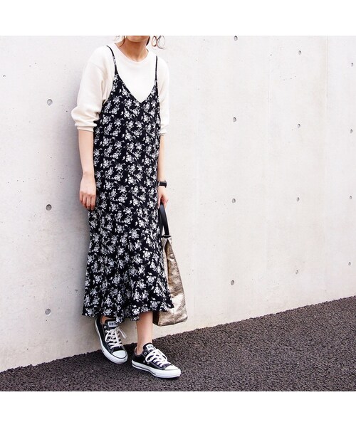 レトロなフラワープリントが魅力的なキャミソールワンピース! 裾に向かって緩やかに広がり、体のラインを拾わないシルエット。また裾は動きを感じるアシンメトリーなデザインが特徴のキャミワンピースです! フィット感のある薄手のトップス、季節に合わせてTシャツ・ノースリーブをレイヤードした大人カジュアルがオススメです!! ーーーーーーーーーーーーーーーーーーーーーー 【COLOR】ベージュ/ブラック 【SIZE】Fサイズ 平置き(㎝) 着丈118 身幅48 【素材】表地 ポリエステル 100% 裏地 ポリエステル 100%