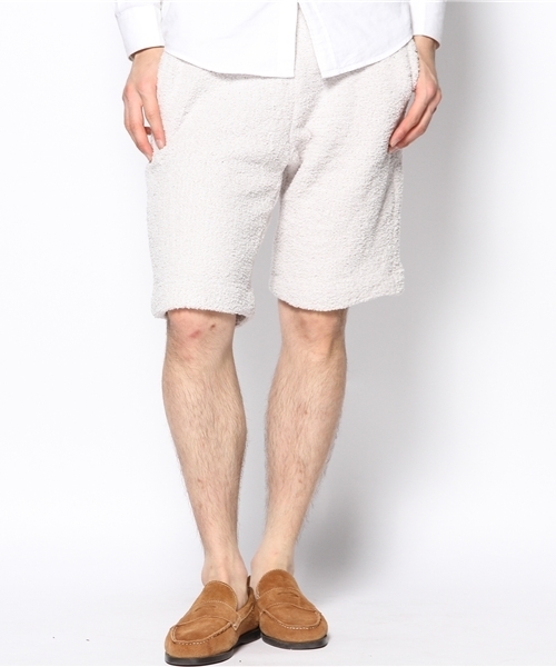 心地よい肌触りが特徴的なボアパイルイージーショーツ。ウエストのリブ部分にはラインでアクセントを入れました。リラックスした着心地はホームウェアからビーチリゾートなど、シーズンレスで着用できるアイテムとしてお勧めです。model:H182 B82 W71 H86 着用サイズ:LARGE 店舗にお問い合わせの際は下記の品名/品番をお申し付け下さい。 品名:UAS BOA SHORTS 品番:1119-136-0395