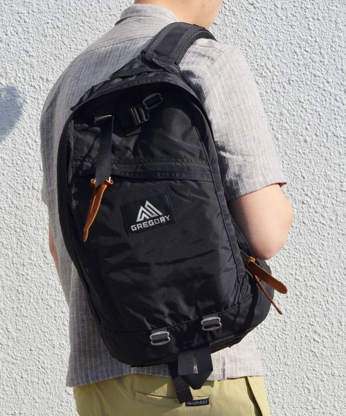 GREGORYのDAY PACK(デイパック) デイパック(DAY PACK)はグレゴリーの伝統を象徴するティアドロップ型パックです。 タウンユースに最適な容量は、ヘビロテ間違い無しの逸品です。 ・斜めに切られたジッパー付フロントポケット ・アイスアックス/トレッキングポール装着用ストラップ ・頑丈な10番YKKジッパーを使用したメインの開口部 ・裏地を張って補強されたボトム部 ・シングルポケット、ツーウェイポケット(別売)用の8リングアタッチメント ・小さくバラつきがちなアイテムの収納に便利な内部のジッパー式メッシュポケット ・ノートPCまたは給水用リザーバーを収納できる内部のスリーブ ・ウエストベルトの端が邪魔にならず仕舞いこめるベルトキーバー ・グレゴリーの特徴である耐久性の高いEVAショルダーストラップ