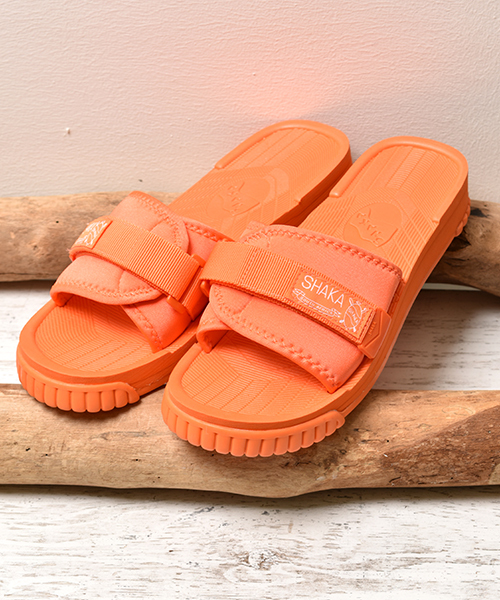 【BUNGALOW】シャワーサンダルをSHAKAのフィルターを通したデザイン。SHAKAらしいウェビングテープとネオプレンを使用し都会的なルックスの仕上り。EVAミッドソールを使用しているので足入れはスニーカーのようなクッション性があり履きやすさは◎。●快適な履き心地90年代当時のソールを基に、軽量化されたソールは、クッション性・耐久性も向上しています。従来の欧米規格を見直す事で、全体のフィット感が増し、歩行時の負担が軽減されました。●高機能をファッショナブルにシンプルなデザインなので、耐久性・快適性に優れたアウトドアアイテムを日常的に楽しめます。スニーカーとも一線を画す、新たなカジュアル・シューズとしての提案です。●もちろんアウトドアにも水陸両用でお使い頂けるので、海や川でもお使いいただけます。スニーカーで使用されるEVAミッドソールや、グリップ力・耐久性に優れたアウトソールを採用し、アクティブなシーンにも活躍します。【 SHAKA / シャカ 】1990年代に実在した南アフリカ共和国のサンダルブランドです。南アフリカ国内の自社工場にてハイクオリティーで独創的なデザインのサンダルを製作しておりました。アフリカの伝統的な柄や色使いを取り入れ、当時のトレンドであったナイロンウェビングを使用したスポーツサンダルは90年代後半に日本でも多く販売されました。アウトドアブームも追い風となってブランドとして認知されはじめましたが、2000年前半にSHAKAは惜しまれながらブランドが消滅してしまいました。そして十数年の時が過ぎ、2013年春、遂にSHAKAが復刻となりました。当時のアーカイブより、SHAKAの特徴であるソールの形状、発色の良いナイロンテープはもちろん、プラスチックパーツや アーチの角度まで忠実に再現する一方、ソールの強度やクッション性、足入れ等の向上をはかり、現代風になった進化版のSHAKAをお楽しみいただけます。【SIZE】5 → 23cm6 → 24cm7 → 25cm8 → 26cm9 → 27cm10 → 28cm