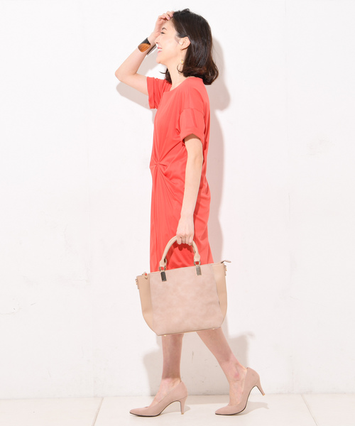 リヨセル・コットンスムースが適度な厚みで、透けずに着ていただけます。アシメのタックデザインがポイントのワンピースは1枚で決まるアイテムになっています。スパッツやテーパード、ワイドパンツなどのボトムとの合わせもお勧めです。