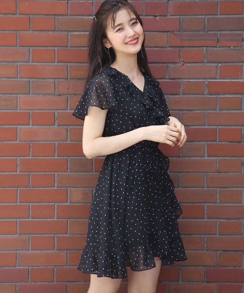 ~NICECLAUP 2018 summer collection~ ■フリル×ミニ丈で上品に大人の肌見せ 首元と裾に入ったフリルも同じ柄を使用することでクドくないフェミニンポイント、 カジュクールになったフロントと巻き風なスカート部ウェストにあるリボンでまるでフリルのローブのようなデザインに♥ 動きのあるフリルで熱い夏も涼しげに。 ■スタイリング 一枚でっちりキマる主役級ワンピはこれ一枚にミュールやサンダルで◎ ですが、今年はここにつばの広いハットを合わせ少しエレガントなアクセントをオンするのも良いですね。 短めの丈を活かし中にスキニーを合わせたアレンジで着まわしの幅も広がります。 気温が安定しない今はスプリングコートを羽織ってその中にはポシェットをななめがけしたスタイリングも◎