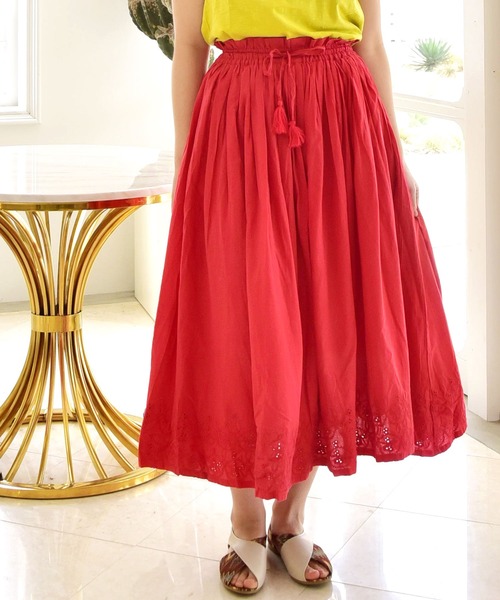 爽やかで大人ガーリーなパンチングレースのロングスカート。軽やかなインド綿をたっぷり使い、コーディネートもより一層華やかに◎女性らしさを演出してくれるアイテムです。 ・ウエストゴム~MAX100cm ・裏地有り。 ※こちらの商品は1点1点職人による手作りとなります。その為、形や色合いなど若干異なる場合がございます。あらかじめご了承ください。 Amina Collection Co.,LTD.